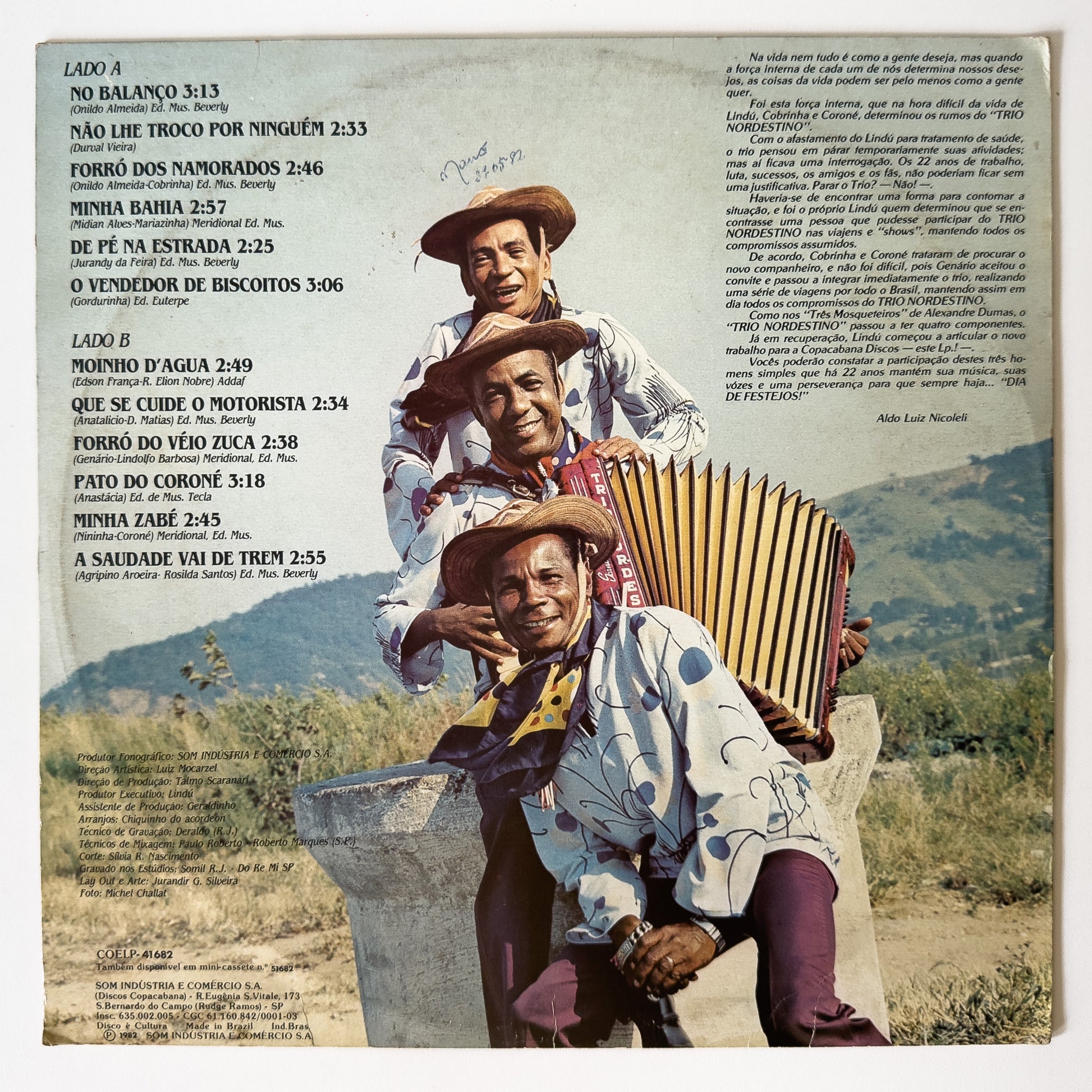Discover the vibrant essence of Northeast Brazil with the LP "Dia De Festejo" by the renowned Trio Nordestino. This album, released by the Copacabana label, encapsulates the joy and tradition of regional festivities, bringing authentic rhythms and contagious melodies that celebrate Brazil's popular culture. Perfect for collectors and lovers of Northeastern music, this vinyl record promises to transform any setting into a true party. Get it now and feel the unique energy that only Trio Nordestino can offer.