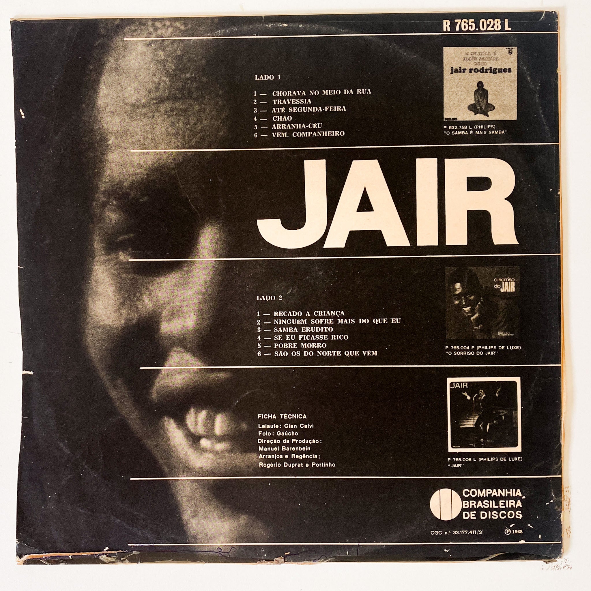 Discover the essence of Brazilian music with the LP "Jair" by the iconic artist Jair Rodrigues. Released under the renowned Philips label, this vinyl record is a true gem for collectors and music lovers. Directly from Brazil, Jair Rodrigues presents a vibrant repertoire that captures the energy and passion of samba and MPB. With his distinctive voice and thrilling interpretations, this album is an essential piece for those who appreciate the richness of national music. Get it now and experience the authentic and captivating sound of Jair Rodrigues on vinyl.