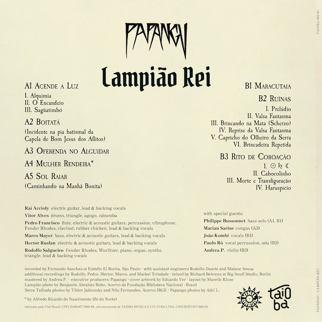 Lampião Rei is the second album by the band Papangu from Paraíba, released in a special edition on 180-gram translucent vinyl. This is the first Brazilian pressing of the record, presenting a narrative inspired by the life of Virgulino Ferreira da Silva, known as Lampião, tracing his journey from childhood to his rise as a legendary figure of the cangaço.