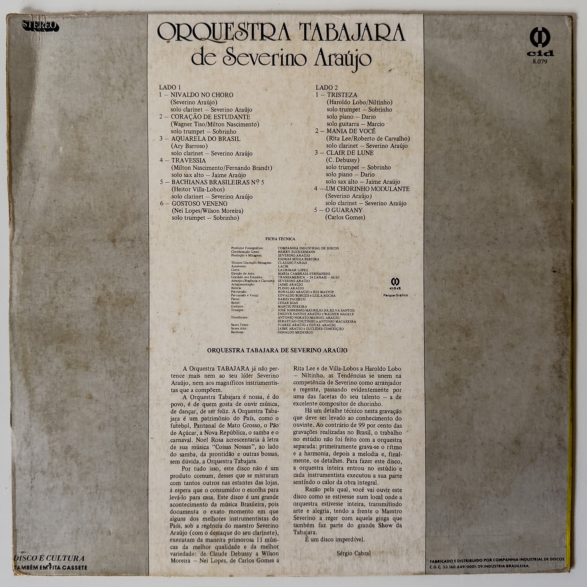Discover the charm and sophistication of Brazilian music with the LP "Orquestra Tabajara De Severino Araújo," a masterpiece by Severino Araújo and his renowned Orquestra Tabajara. This album, released under the CID label, captures the vibrant and elegant essence of the orchestra that has enchanted generations with its impeccable performances and unique orchestral arrangements. Recorded in Brazil, the record is a testament to the talent of Severino Araújo, one of the country's most respected conductors and clarinetists. Perfect for instrumental music lovers and vinyl collectors, this LP offers a rich and immersive sound experience, transporting listeners to a universe of rhythm and melody. Get your copy now and enjoy a piece of Brazilian musical history in your collection.